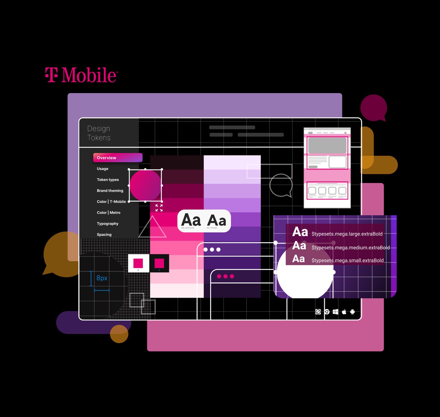 At T-Mobile, the design infrastructure is built upon three foundational design systems: Phoenix, DW3, and Scale. These systems are the keystones of current user interface (UI) architecture, each offering unique features and applications.