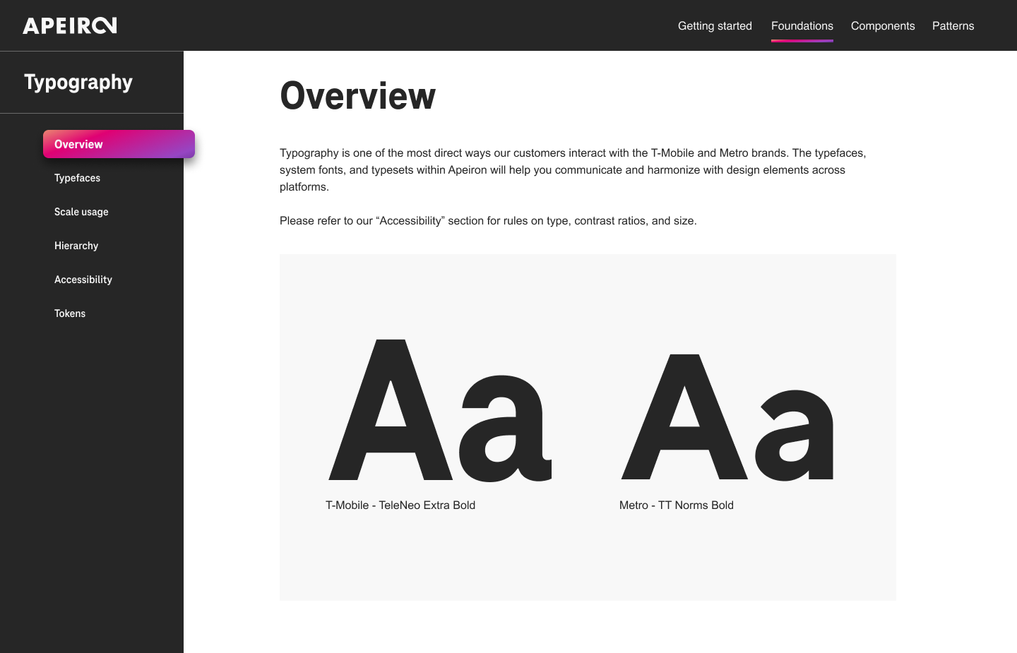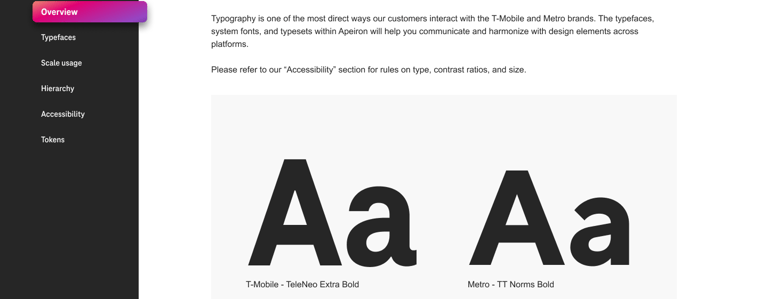 Typography is one of the most direct ways our customers interact with the T-Mobile and Metro brands. The typefaces, system fonts, and typesets within Apeiron will help you communicate and harmonize with design elements across platforms. TeleNeo is our primary typeface for T-Mobile. TT Norms is the primary typeface for Metro. Use it for all text except Subtitle, Body, and Caption typesets.