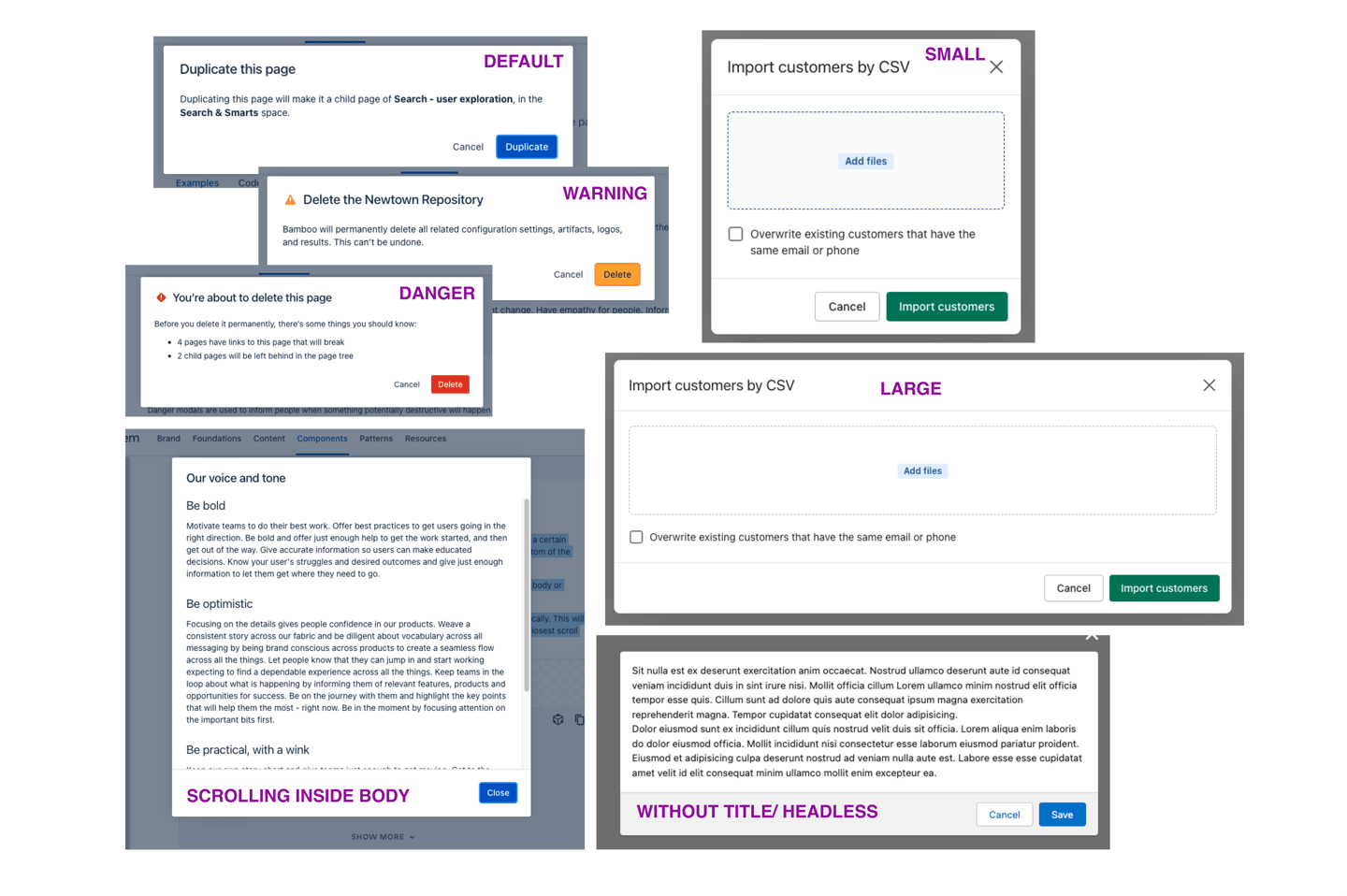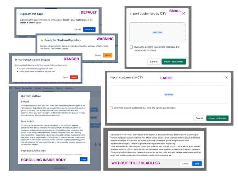 Dialog Types - Headless, footless, directional, scrolling inside the dialog box