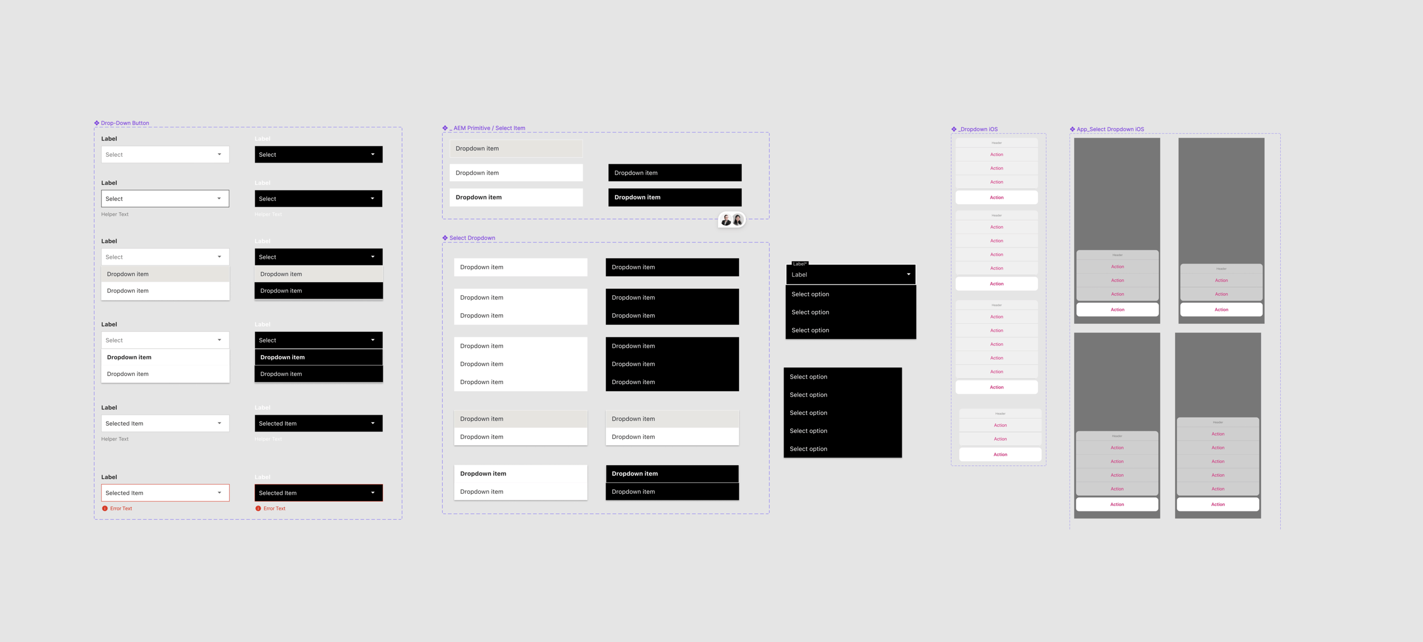 These are the building blocks of the design system. Components are pre-designed and coded elements such as buttons, cards, dropdowns, lists, and menus that designers and developers can reuse across different parts of a project to maintain a consistent look and feel.