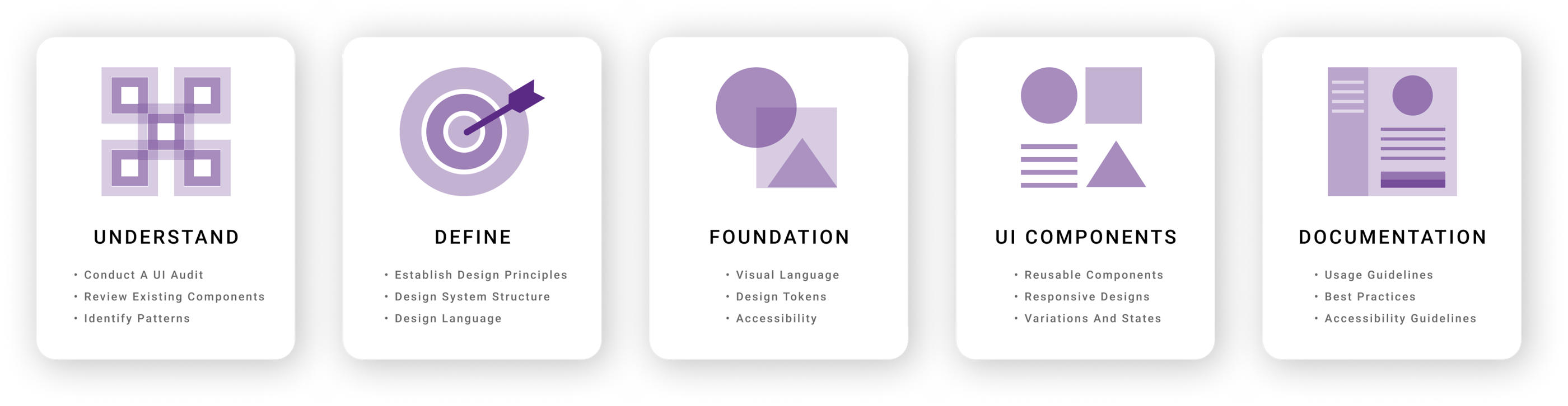 Foundations & Styles: These core principles and guidelines define the design system's overall aesthetic and functional framework. This includes global styles, design principles, accessibility standards, and how various layouts and icons should be used to ensure consistency across all designs.