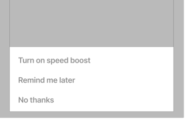 Stacked full-width buttons accommodate longer button text. Confirming actions appear above dismissive actions.