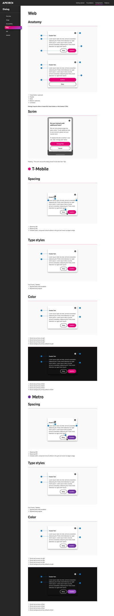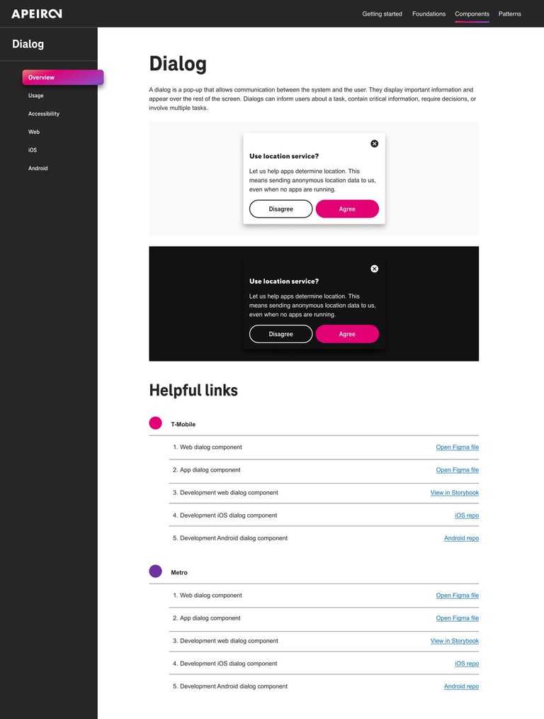 Design systems encompass a vast array of complexities, and my experience with the components developed for T-Mobile has only touched on a fraction of them. To provide a more comprehensive view, I'd like to showcase a Dialog component I've been involved with. In terms of design, we prioritized ensuring that each component is accessible, intuitive, and aesthetically pleasing.
