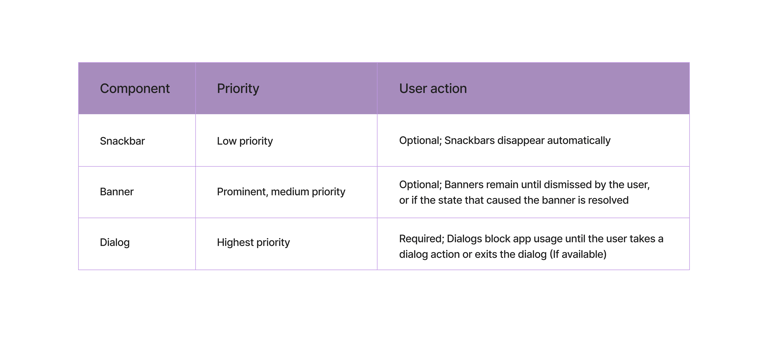 Use dialogs for prompts that block normal operation and critical information requiring a specific user task, decision, or acknowledgment. Dialogs are purposefully interruptive, so they should be used sparingly, as not every choice or setting warrants interruption.
