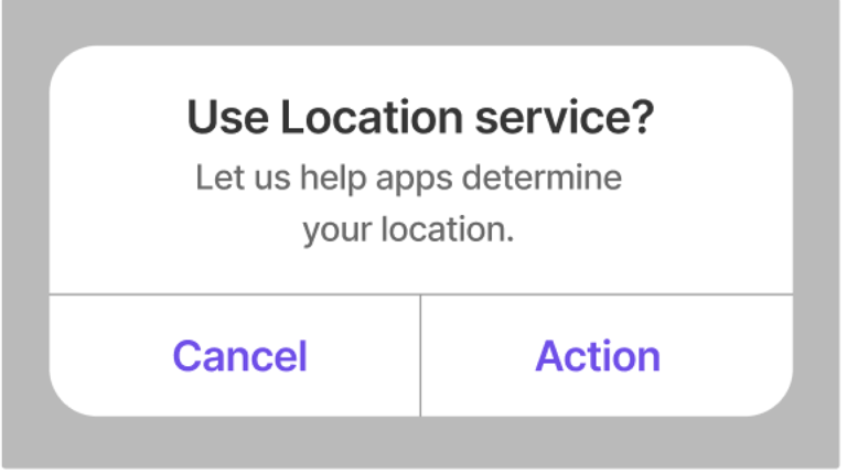 In the case of two action buttons, it’s recommended to use Alerts that fit the text labels horizontally.