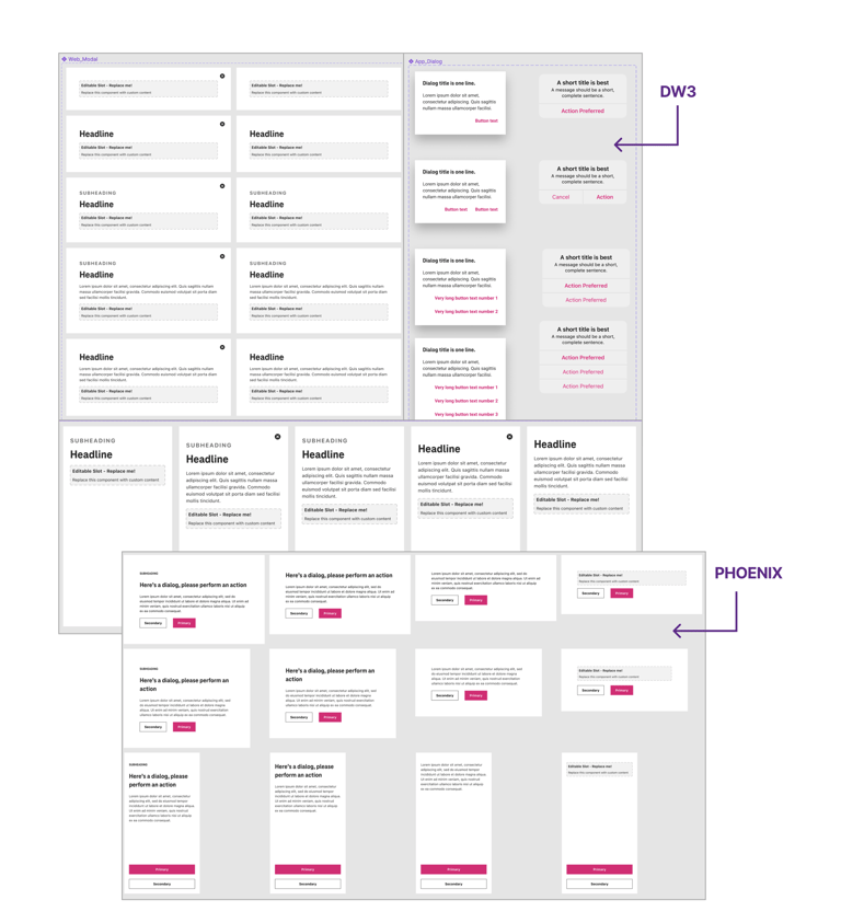 While each design system has its merits, the differences between DW3 and Phoenix create a fragmented user experience where the user has to re-learn interactions and visual cues when moving between systems.